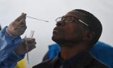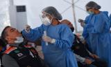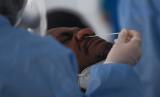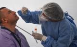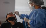 Petugas medis melakukan tes usap kepada delegasi yang mengikuti pertemuan Global Platform for Disaster Risk Reduction (GPDRR) 2022 di Nusa Dua, Bali, Selasa (24/5/2022). Tes usap bagi semua delegasi dan petugas tersebut untuk mendukung kegiataan GPDRR 2022 di Bali agar berjalan dengan aman, inklusif dan sesuai dengan protokol kesehatan. (FOTO : ANTARA/Wahyu Putro A)