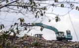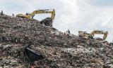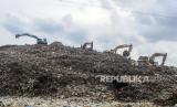 Sejumlah alat berat memindahkan tumpukan sampah di Tempat Pembuangan Akhir (TPA) Cipayung, Depok, Jawa Barat, Selasa (24/5/2022). TPA seluas 11,2 hektare tersebut telah menampung 2,5 juta meter kubik sampah yang seharusnya hanya dapat menampung 1,3 juta meter kubik yang dikhawatirkan dapat memicu terjadinya longsoran sampah sehingga menyebabkan operasional truk sampah terganggu. (FOTO : Republika/Putra M. Akbar)