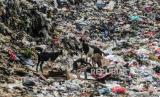 Sejumlah kambing mencari makan dari tumpukan sampah di Tempat Pembuangan Akhir (TPA) Cipayung, Depok, Jawa Barat, Selasa (24/5/2022). TPA seluas 11,2 hektare tersebut telah menampung 2,5 juta meter kubik sampah yang seharusnya hanya dapat menampung 1,3 juta meter kubik yang dikhawatirkan dapat memicu terjadinya longsoran sampah sehingga menyebabkan operasional truk sampah terganggu. Republika/Putra M. Akbar (FOTO : Republika/Putra M. Akbar)
