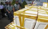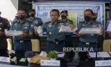 REPUBLIKA.CO.ID, BATAM -- Pangkoarmada 1 Laksamana Muda TNI Arsyad Abdullah (kedua kanan) melihat barang bukti kasus penyeludupan benih bening lobster saat rilis di Makolanal Batam, Kepulauan Riau, Rabu (25/5/2022). Sebanyak 460 ribu ekor benih bening lobster berhasil diamankan TNI AL saat akan diselundupkan ke Singapura.