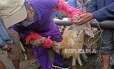 REPUBLIKA.CO.ID, TEMANGGUNG -- Petugas memeriksa kuku seekor kambing saat pemeriksaan hewan ternak terkait wabah penyakit mulut dan kuku (PMK) di Pasar Hewan Ngadirejo, Temanggung, Jawa Tengah, Rabu (25/5/2022).