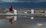 REPUBLIKA.CO.ID, PALU -- Petani memasukkan garam yang baru dipanen ke dalam karung di Palu, Sulawesi Tengah, Rabu (25/5/2022). Sejumlah petani garam di wilayah itu mengaku mengalami penurunan produksi garam selama tahun ini sekitar 20 persen dibanding sebelumnya karena faktor anomali cuaca.