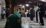 Romo Paroki Gereja Katholik Kumetiran Yohanes Dwi Harsanto (kedua kanan) mendoakan almarhum Buya?Ahmad Syafii Maarif saat prosesi penyemayaman di Masjid Gede Kauman, Yogyakarta, Jumat (27/5/2022). Ketua Pimpinan Pusat Muhammadiyah Tahun 1998-2005, Buya?Ahmad Syafii Maarif?wafat pada Jumat (27/5/2022) pukul 10.15 WIB di RS PKU Muhammadiyah Gamping, Sleman, Daerah Istimewa Yogyakarta (DIY) karena sakit. (FOTO : ANTARA/Andreas Fitri Atmoko)