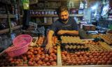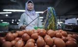 REPUBLIKA.CO.ID,BANDUNG -- Pedagang menunjukkan telur dagangannya di Pasar Kosambi, Bandung, Jawa Barat, Kamis (2/6/2022).