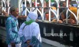 REPUBLIKA.CO.ID,BOYOLALI -- Pengantar jamaah calon haji memadati halaman Asrama Haji Donohudan, Boyolali, Jawa Tengah, Jumat (3/6/2022).
