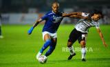 Striker Persib Bandung David Da SIlva berebut bola dengan gelandang Bali United Hariyono pada laga penyisihan Grup C Piala Presiden antara Persib Bandung melawan Bali United di Stadion GBLA, Bandung, Ahad (12/6/2022). Laga berakhir imbang dengan skor 1-1. (FOTO : Republika/Yogi Ardhi)