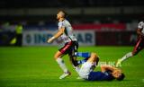 Bek Persib Bandung Nick Kuipers terjatuh setelah dilanggar Illja Spasojevic pada laga penyisihan Grup C Piala Presiden antara Persib Bandung melawan Bali United di Stadion GBLA, Bandung, Ahad (12/6/2022). Laga berakhir imbang dengan skor 1-1. (FOTO : Republika/Yogi Ardhi)
