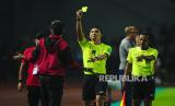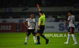 Wasit Fariq Hitaba mengusir pemain Bali United Eber Bessa pada laga penyisihan Grup C Piala Presiden antara Persib Bandung melawan Bali United di Stadion GBLA, Bandung, Ahad (12/6/2022). Laga berakhir imbang dengan skor 1-1. (FOTO : Republika/Yogi Ardhi)