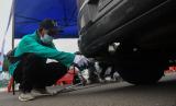 Seorang petugas Suku Dinas Lingkungan Hidup Jakarta Pusat melakukan uji emisi kendaraan di Gambir, Jakarta, Selasa (14/6/2022). Uji emisi bagi kendaraan roda empat yang berlangsung hingga 16 Juni 2022 tersebut sebagai upaya mewujudkan kualitas udara yang sehat di Ibu Kota.  (FOTO : ANTARA/Wahyu Putro A)