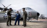 REPUBLIKA.CO.ID,BANDUNG -- Pilot uji Kapten Esther Gayatri (kanan) bersama sejumlah awak kabin menaiki pesawat CN235-220 Maritime Patrol Aircraft (MPA) Full Mission di Hanggar Aircraft Services PTDI KP II, Jalan Pajajaran, Kota Bandung, Rabu (15/6/2022).