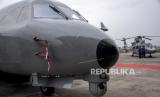 Kru pesawat terbang berada di dekat pesawat CN235-220 Maritime Patrol Aircraft (MPA) Full Mission di Hanggar Aircraft Services PTDI KP II, Jalan Pajajaran, Kota Bandung, Rabu (15/6/2022). Kementerian Pertahanan RI meminta PT Dirgantara Indonesia untuk meningkatkan produksi pesawat terbang yang diharapkan dapat memproduksi sedikitnya 20 pesawat terbang CN235 serta prototipe pesawat tempur dalam lima tahun ke depan guna penguatan alutsista militer Indonesia. Foto: Republika/Abdan Syakura (FOTO : REPUBLIKA/ABDAN SYAKURA)