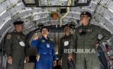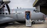 Pilot uji Kapten Esther Gayatri (kanan) bersama sejumlah awak kabin menaiki pesawat CN235-220 Maritime Patrol Aircraft (MPA) Full Mission di Hanggar Aircraft Services PTDI KP II, Jalan Pajajaran, Kota Bandung, Rabu (15/6/2022). Kementerian Pertahanan RI meminta PT Dirgantara Indonesia untuk meningkatkan produksi pesawat terbang yang diharapkan dapat memproduksi sedikitnya 20 pesawat terbang CN235 serta prototipe pesawat tempur dalam lima tahun ke depan guna penguatan alutsista militer Indonesia. Foto: Republika/Abdan Syakura (FOTO : REPUBLIKA/ABDAN SYAKURA)