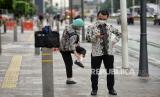 Pekerja saat akan menyeberangi pelican crossing di kawasan Bundaran HI, Jakarta, Rabu (15/6/2022). Seiring dengan meningkatnya kasus harian Covid-19 yang disebabkan adanya varian baru BA4 dan BA5, Presiden Joko Widodo mengimbau masyarakat untuk tetap waspada meski rerata positif kasus Coviddi Indonesia masih berada di angka 1,36 persen atau dibawah standar WHO yakni 5 persen. Republika/Thoudy Badai (FOTO : Republika/Thoudy Badai)