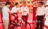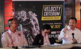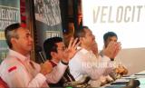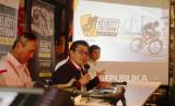 Ketua Dewan pembina Velocity Primus Dorimulu (kanan) bersama Sekjen PB ISSI Parama Nugroho (kiri) dan Deputi Bidang Peningkatan Prestasi Olahraga Kementerian Pemuda dan Olahraga Chandra Bhakti menyampaikan penjelasan kepada wartawan pada acara konpers perlombaan balap sepeda bertajuk Velocity Criterium, di Jakarta, Kamis (16/6/2022). Perlombaan balap sepeda ini akan digelar di sejumlah kota yaitu Jakarta, Bandung, Yogjakarta, Surabaya, Bali dan Flores dengan event perdana yang akan diselenggarakan pada Ahad, 26 Juni 2022 mendatang di Meikarta Central Park, Cikarang, Bekasi, Jawa Barat. Foto: Darmawan/Republika (FOTO : Republika/Darmawan)
