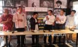 REPUBLIKA.CO.ID,JAKARTA -- Race Velocity Critorium & Wakil Sekjen PB ISSI Sondi Sanpurno, Sekjen PB ISSI Parama Nugroho, Deputi Bidang Peningkatan Prestasi Olahraga Kementerian Pemuda dan Olahraga Chandra Bhakti, Ketua Dewan pembina Velocity Primus Dorimulu, Event Director Velocity Critorium David Baturbara dan Ketua Pelaksana Harian Velocity Jeremy Siregar (kiri-kanan) saling menyapa sebelum dimulainya konpres perlombaan balap sepeda bertajuk Velocity Criterium, di Jakarta, Kamis (16/6/2022).