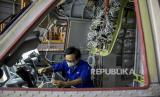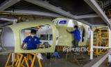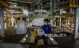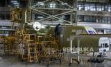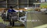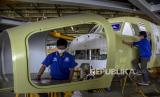Sejumlah pekerja menyelesaikan produksi pesawat NC212i di Hanggar PT Dirgantara Indonesia, Kota Bandung, Rabu (22/6/2022). PT Dirgantara Indonesia tengah menyelesaikan satu unit pesawat NC212i yang dipesan oleh negara Thailand untuk keperluan sektor pertanian serta satu unit pesawat yang sama untuk TNI AU Republik Indonesia guna penguatan alutsista militer Indonesia. Hingga awal tahun ini PT Dirgantara Indonesia telah memproduksi dan mengirim 119 unit pesawat NC212i ke dalam dan luar negeri. Foto: Republika/Abdan Syakura (FOTO : REPUBLIKA/ABDAN SYAKURA)