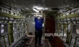 Pekerja menyelesaikan produksi pesawat NC212i di Hanggar PT Dirgantara Indonesia, Kota Bandung, Rabu (22/6/2022). PT Dirgantara Indonesia tengah menyelesaikan satu unit pesawat NC212i yang dipesan oleh negara Thailand untuk keperluan sektor pertanian serta satu unit pesawat yang sama untuk TNI AU Republik Indonesia guna penguatan alutsista militer Indonesia. Hingga awal tahun ini PT Dirgantara Indonesia telah memproduksi dan mengirim 119 unit pesawat NC212i ke dalam dan luar negeri. Foto: Republika/Abdan Syakura (FOTO : REPUBLIKA/ABDAN SYAKURA)