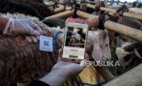 Petugas dari Dinas Ketahanan Pangan dan Pertanian (DKPP) Kota Bandung memantau hewan kurban pada aplikasi e-Selamat (Sehat Layak Makin Tenang) di salah satu tempat penjualan hewan kurban di Jalan Soekarno Hatta, Cipamokolan, Kota Bandung, Jumat (24/6/2022). Pemeriksaan tersebut untuk memastikan seluruh hewan kurban yang dijual oleh pedagang terbebas dari penyakit mulut dan kuku (PMK) dan layak dikonsumsi oleh masyarakat. Foto: Republika/Abdan Syakura (FOTO : REPUBLIKA/ABDAN SYAKURA)