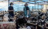 Petugas dari Dinas Ketahanan Pangan dan Pertanian (DKPP) Kota Bandung memeriksa kesehatan kambing yang dijual di salah satu tempat penjualan hewan kurban di Jalan Soekarno Hatta, Cipamokolan, Kota Bandung, Jumat (24/6/2022). Pemeriksaan tersebut untuk memastikan seluruh hewan kurban yang dijual oleh pedagang terbebas dari penyakit mulut dan kuku (PMK) dan layak dikonsumsi oleh masyarakat. Foto: Republika/Abdan Syakura (FOTO : REPUBLIKA/ABDAN SYAKURA)