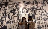 Pengunjung mengamati foto Wali Kota Bandung dari masa ke masa di Museum Sejarah Kota Bandung, Jalan Aceh, Kota Bandung, Jumat (24/6/2022). Setelah ditutup selama kurang lebih dua tahun akibat pandemi Covid-19, museum yang menjadi sarana wisata edukasi, informasi dan sejarah Kota Bandung tersebut telah dibuka untuk umum dengan tetap menerapkan protokol kesehatan Covid-19 di masa PPKM level 1. (FOTO : REPUBLIKA/ABDAN SYAKURA)