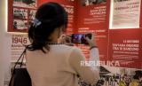 Pengunjung berfoto dengan latar belakang foto pahlawan di Museum Sejarah Kota Bandung, Jalan Aceh, Kota Bandung, Jumat (24/6/2022). Setelah ditutup selama kurang lebih dua tahun akibat pandemi Covid-19, museum yang menjadi sarana wisata edukasi, informasi dan sejarah Kota Bandung tersebut telah dibuka untuk umum dengan tetap menerapkan protokol kesehatan Covid-19 di masa PPKM level 1. (FOTO : REPUBLIKA/ABDAN SYAKURA)