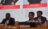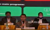 Direktur Utama PT Mahaka Media Tbk Tubagus Farash Farich (tengah) memberikan paparan saat Public Expose usai menggelar RUPS Tahunan di Jakarta, Senin (27/6/2022). RUPS Tahunan PT Mahaka Media Tbk tersebut mengangkat Tubagus Farash Farich sebagai Direktur Utama dan mengangkat Mahendra Agakhan Thohir sebagai Komisaris Utama serta RUPST juga menyetujui pergantian jajaran direktur dan komisaris.Prayogi/Republika (FOTO : Prayogi/Republika.)