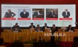 Direktur Utama PT Mahaka Media Tbk Tubagus Farash Farich (dua kanan) memberikan paparan saat Public Expose usai menggelar RUPS Tahunan di Jakarta, Senin (27/6/2022). RUPS Tahunan PT Mahaka Media Tbk tersebut mengangkat Tubagus Farash Farich sebagai Direktur Utama dan mengangkat Mahendra Agakhan Thohir sebagai Komisaris Utama serta RUPST juga menyetujui pergantian jajaran direktur dan komisaris.Prayogi/Republika (FOTO : Prayogi/Republika.)