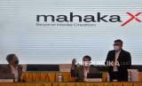 Komisaris Utama PT Mahaka Media Tbk Mahendra Agakhan Thohir memberikan paparan saat Public Expose usai menggelar RUPS Tahunan di Jakarta, Senin (27/6/2022). RUPS Tahunan PT Mahaka Media Tbk tersebut mengangkat Tubagus Farash Farich sebagai Direktur Utama dan mengangkat Mahendra Agakhan Thohir sebagai Komisaris Utama serta RUPST juga menyetujui pergantian jajaran direktur dan komisaris.Prayogi/Republika (FOTO : Prayogi/Republika.)