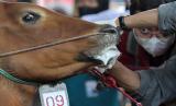 Petugas Dinas Ketahanan Pangan dan Pertanian Kota Surabaya memeriksa mulut sapi di salah satu penjual hewan kurban di Surabaya, Jawa Timur, Rabu (29/6/2022). Pemeriksaan kesehatan hewan kurban tersebut dilakukan untuk memastikan hewan kurban yang dijual dalam kondisi sehat terutama terbebas dari penyakit mulut dan kuku (PMK) sehingga layak dikonsumsi. (FOTO : ANTARA/Didik Suhartono)