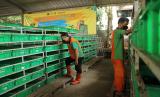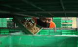 Petugas kebersihan mengolah sampah organik untuk dijadikan pakan maggot di Rumah Maggot Cempaka, Jakarta, Kamis (30/6/2022). Suku Dinas Lingkungan Hidup Jakarta Pusat-Satpel Cempaka Putih melalui Rumah Maggot Cempaka membudidayakan maggot (Black Soldier Fly) sebagai salah satu solusi mengurangi volume sampah organik, dimana satu ton sampah organik akan mampu dikonsumsi oleh ratusan ribu maggot dalam waktu lima hari. (FOTO : ANTARA/Agha Yuninda)