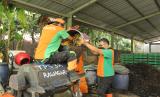 REPUBLIKA.CO.ID, JAKARTA -- Petugas kebersihan mengolah sampah organik untuk dijadikan pakan maggot di Rumah Maggot Cempaka, Jakarta, Kamis (30/6/2022).