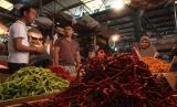 REPUBLIKA.CO.ID,JAKARTA -- Pedagang cabai melayani pembeli di Pasar Induk Kramat Jati, Jakarta, Senin (4/7/2022).