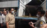 REPUBLIKA.CO.ID,JAKARTA -- Menteri Pertanian Syahrul Yasin Limpo bersama Gubernur DKI Jakarta Anies Baswedan melihat hewan ternak yang akan didistribusikan seusai penandatanganan nota kesepakatan dan peluncuran dukungan Kementerian Pertanian dalam penyediaan ternak qurban dan pangan strategis bagi wilayah DKI Jakarta di Gedung Kementan, Jakarta, Senin (4/7/2022).