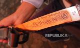 Golok sembelih inventaris Masjid Al Furqon di sela penyembelihan hewan qurban di Masjid Al Furqon Bandung, Ahad (10/7/2022). Golok sembelih ini dibuat khusus menggunakan Baja D2 yang memiliki kandungan karbon tinggi. Tahun ini warga menyembelih 13 ekor sapi dan 14 ekor kambing yang didistribusikan ke sekitar wilayah perumahan warga. (FOTO : Republika/Yogi Ardhi)