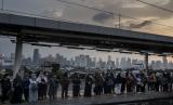 Sejumlah calon penumpang menunggu kedatangan KRL di Stasiun Manggarai, Jakarta, Selasa (12/7/2022). Badan Kependudukan dan Keluarga Berencana Nasional (BKKBN) menyatakan para dewan dari Perserikatan Bangsa-Bangsa (PBB) memprediksi dunia akan memiliki delapan miliar penduduk pada bulan November 2022, sementara itu Kementerian PPN/Bappenas dan BPS memperkirakan jumlah penduduk Indonesia pada 2045 akan mencapai 318,96 juta orang. (FOTO : ANTARA/Aprillio Akbar)