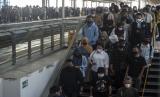 Sejumlah warga turun dari KRL di Stasiun Manggarai, Jakarta, Selasa (12/7/2022). Badan Kependudukan dan Keluarga Berencana Nasional (BKKBN) menyatakan para dewan dari Perserikatan Bangsa-Bangsa (PBB) memprediksi dunia akan memiliki delapan miliar penduduk pada bulan November 2022, sementara itu Kementerian PPN/Bappenas dan BPS memperkirakan jumlah penduduk Indonesia pada 2045 akan mencapai 318,96 juta orang. (FOTO : ANTARA/Aprillio Akbar)