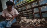 REPUBLIKA.CO.ID, LEBAK -- Perajin menunjukkan produk tas botol dari bambu di Cimangenteng, Lebak, Banten, Kamis (14/7/2022). Kerajinan tas botol dengan memanfaatkan limbah dari bambu tersebut dijualnya dengan harga Rp10 ribu hingga Rp20 ribu per buah tergantung tingkat kesulitan anyaman bambu.