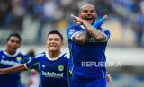 Striker Persib David Da Silva merayakan golnya pada laga Liga Indonesia antara Persib Bandung melawan Madura United di Stadion GBLA, Bandung, Sabtu (30/7/2022).Laga berakhir dengan skor 3-1 bagi kemenangan tim tamu. (FOTO : Republika/Yogi Ardhi)