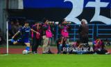 Striker Persib David Da Silva berdoa usai laga Liga Indonesia antara Persib Bandung melawan Madura United di Stadion GBLA, Bandung, Sabtu (30/7/2022).Laga berakhir dengan skor 3-1 bagi kemenangan tim tamu. (FOTO : Republika/Yogi Ardhi)