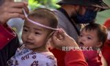 Petugas mengukur kepala anak saat kegiatan Bulan Imunisasi Anak Nasional di halaman Masjid At Taqwa, Sukajadi, Kota Bandung, Selasa (2/8/2022). Pemerintah Provinsi Jawa Barat menargetkan 3,4 juta balita mendapatkan imunisasi campak rubela serta 4,09 juta balita mendapatkan imunisasi polio tetes, polio injeksi dan pentabio selama pelaksanaan Bulan Imunisasi Anak Nasional (BIAN) 2022 yang digelar pada bulan Agustus ini. (FOTO : REPUBLIKA/ABDAN SYAKURA)