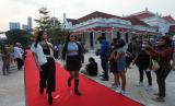 REPUBLIKA.CO.ID,SURABAYA -- Model memperagakan busana saat Mejeng Nang Suroboyo di Alun-Alun Surabaya, Jawa Timur, Sabtu (6/8/2022).