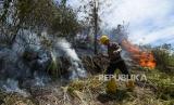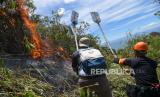 REPUBLIKA.CO.ID, SAMOSIR -- Petugas gabungan dari Manggala Agni Daops Sumatera Utara II Pematang Siantar, Damkar Pemkab Samosir dan Koramil 04 Harian berusaha memadamkan kebakaran hutan dan lahan (karhutla) di Desa Simulop, Pangururan, Samosir, Sumatera Utara, Senin (8/8/2022).