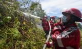 Seratusan personel gabungan dari Manggala Agni, TNI, Polri dan instansi terkait diterjunkan ke lokasi kebakaran yang telah menghanguskan sekitar 49 hektare lahan di empat desa di daerah itu.