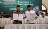 REPUBLIKA.CO.ID,YOGYAKARTA -- Menteri Perdagangan Zulkifli Hasan bersama Ketua Umum Pengurus Besar Nahdlatul Ulama (PBNU) Yahya Cholil Staquf menandatangani nota kesepahaman antara Kementerian Perdagangan dan PBNU di Hotel Meliá Purosani, Yogyakarta pada, Kamis, (11/8/2022).
