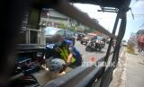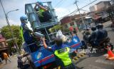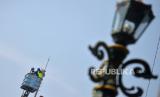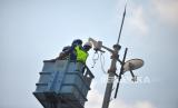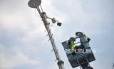 Patroli Alat Pemberi Isyarat Lalu Lintas (APILL) Dinas Perhubungan Kota Yogyakarta mengganti kamera CCTV di pertigaan PKU Muhammadiyah Kauman, Yogyakarta, Senin (15/8/2022). Pergantian kamera CCTV ini dilakukan secara berkala untuk menunjang kinerja pengawasan untuk lalu-lintas dan pemantauan keamanan. Beberapa titik di Yogyakarta terutama destinasi pariwisata sudah memiliki fasilitas CCTV seperti titik nol Yogyakarta, Tugu Pal Putih, dan Malioboro. (FOTO : Republika/Wihdan Hidayat)