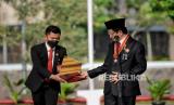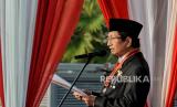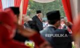 Imam Besar Masjid Istiqlal Nazaruddin Umar saat bertindak sebagai Inspektur Upacara pada upacara HUT ke-77 RI di kawasan Masjid Istiqlal, Jakarta, Rabu (17/8/2022). Masjid Istiqlal pertama kali menggelar upacara lintas agama dalam memperingati HUT ke-77 RI dengan harapan menjadi momentum persatuan antar umat beragama. Upacara tersebut diikuti juga oleh pelajar dari Madrasah dan pengelola Istiqlal. (FOTO : Republika/Thoudy Badai)