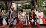 Imam Besar Masjid Istiqlal Nazaruddin Umar (kedua kiri) berbincang bersama Ketua Konferensi Waligereja Indonesia (Katolik) kardinal Mgr. Ignatius Suharso (kanan), Sekretaris Umum Pengurus Harian Parisada Hindu Dharma Indonesia (PHDI) Pusat I Ketut Budiasa (kedua kiri) dan Ketua Umum Perwakilan Umat Budha Indonesia Hartati Murdaya (tengah) saat upacara HUT ke-77 RI di kawasan Masjid Istiqlal, Jakarta, Rabu (17/8/2022). Masjid Istiqlal pertama kali menggelar upacara lintas agama dalam memperingati HUT ke-77 RI dengan harapan menjadi momentum persatuan antar umat beragama. Upacara tersebut diikuti juga oleh pelajar dari Madrasah dan pengelola Istiqlal. Republika/Thoudy Badai (FOTO : Republika/Thoudy Badai)