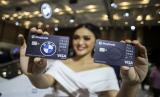 Model menunjukkan kartu kredit BMW Maybank dan MINI Maybank dalam acara peluncuran kartu kredit Co-Branding BMW Maybank dan MINI Maybank di BMW Group Pavilion Convention Hall Gaikindo Indonesia International Auto Show (GIIAS) 2022 ICE BSD, Tangerang, Banten, Kamis (18/7/2022). PT Bank Maybank Indonesia, Tbk bekerja sama dengan PT BMW Indonesia, sebagai Agen Tunggal Pemegang Merek kendaraan premium, BMW dan MINI, meluncurkan kartu kredit Co-Branding BMW Maybank kartu kredit (BMW Maybank) dan MINI Maybank kartu kredit (MINI Maybank). (FOTO : ANTARA/Rivan Awal Lingga)