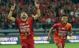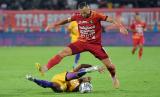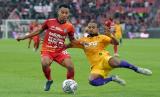 REPUBLIKA.CO.ID, GIANYAR -- Pesepak bola Bali United Ilija Spasojevic (atas) berebut bola dengan pesepak bola Persik Kediri Mohamad Rivaldi pada pertandingan Liga 1 di Stadion Kapten I Wayan Dipta, Gianyar, Bali, Sabtu (27/8/2022). Bali United mengalahkan Persik Kediri dengan skor 4-0.