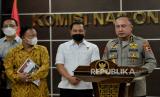 Ketua Komnas HAM Ahmad Taufan Damanik menyampaikan keterangan pers sebelum menyerahkan laporan hasil pemantauan dan penyelidikan peristiwa penembakan brigadir J kepada Kepolisian yang diwakili Inspektur Pengawasan Umum (Irwasum) Komjen Agung Budi Maryoto di kantor Komnas HAM, Jakarta, Kamis (1/8/2022). Irwasum Komjen Agung Budi Maryoto mengatakan bahwa Polri akan menindaklanjuti hasil rekomendasi dari Komnas HAM terkait kasus dugaan pembunuhan berencana terhadap Brigadir J hingga persidangan. Republika/Thoudy Badai (FOTO : Republika/Thoudy Badai)